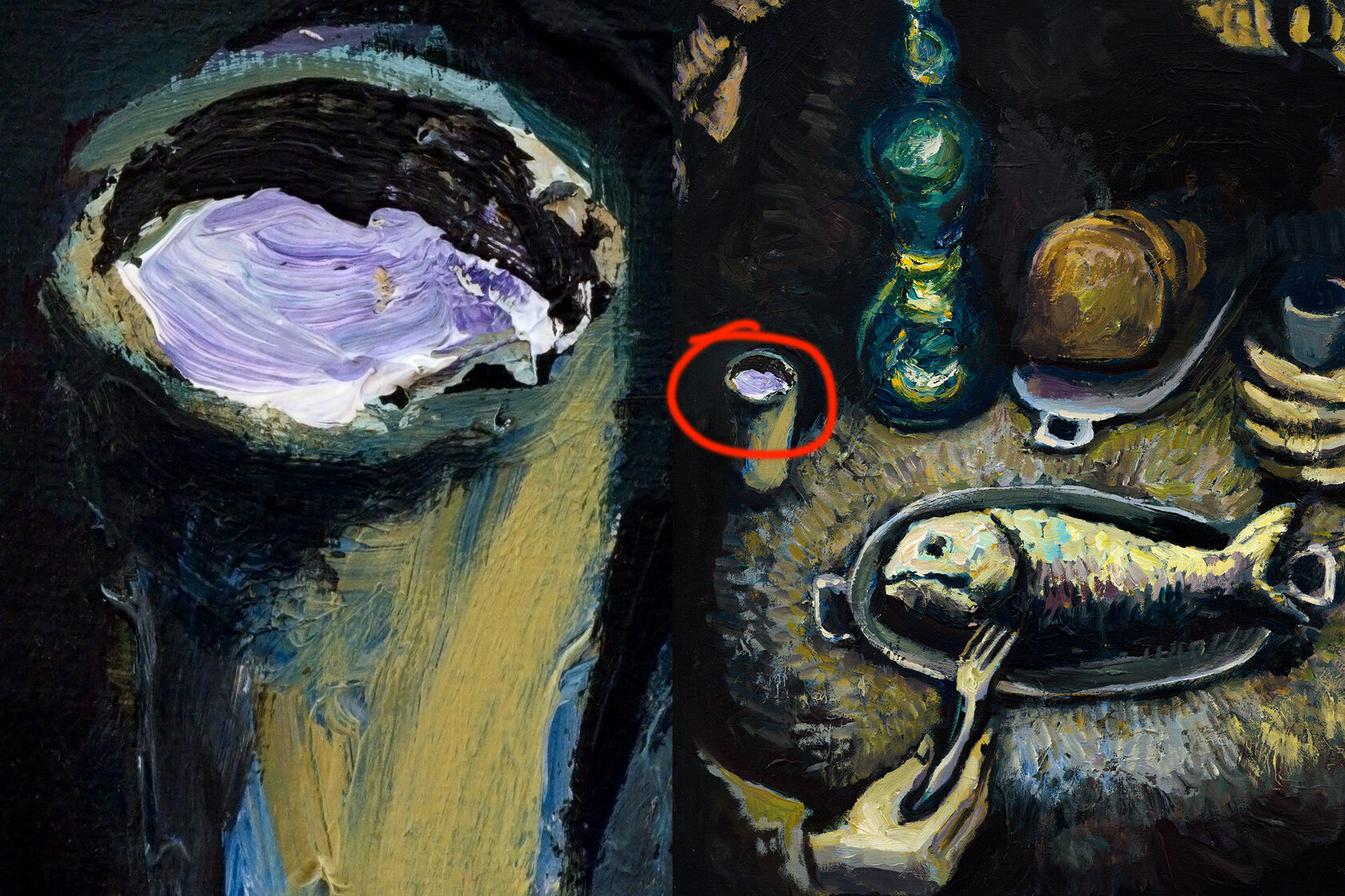 Technically it was very interesting. And perhaps this was our most challenging project in all 8 years of digitizing paintings. Deep black-violet tones and abundant highlights demanded considerable effort. It was especially difficult to work with large formats in confined spaces.